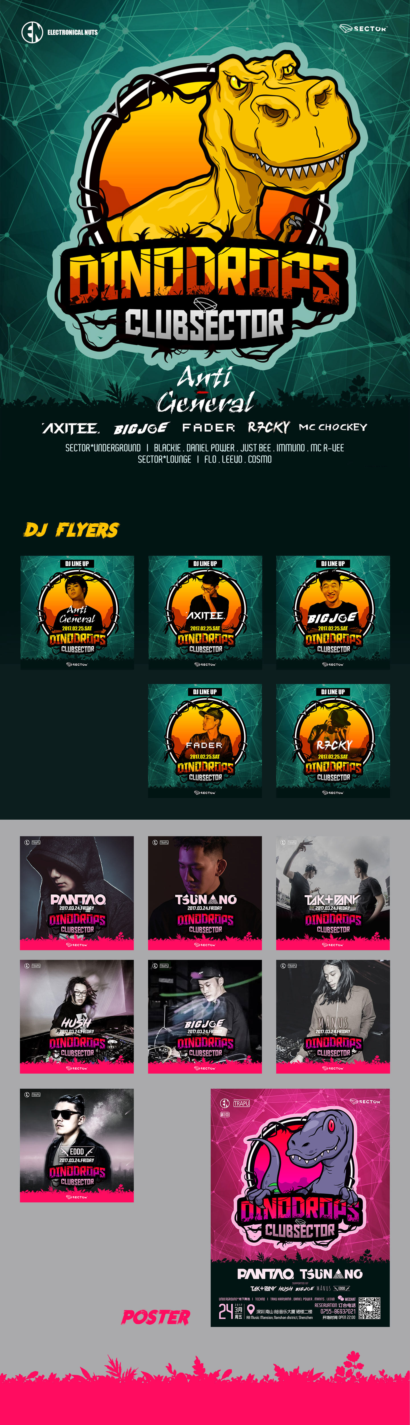 Poster series for Dinodrop @Club Sector, Shenzhen, China.